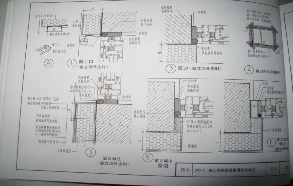 (七)房屋买卖合同中应明确外窗的气密性、水密性、抗风压性、传热系数、外窗遮阳系数、隔声性能等。 二、设计单位应加强外窗工程设计质量管理 (一)设计单位应优先选用现行图集中标准规格尺寸的外窗,应优先选用现行《北京市推广、限制和禁止使用建筑材料目录》中推广使用的建筑外窗及辅料,严禁选用现行《北京市推广、限制和禁止使用建筑材料目录》中禁止使用的建筑外窗及辅料。 北京市推广、限制和禁止使用建筑 材料目录(2014年版) 限制使用建筑门窗及辅料: 普通单层玻璃和简易双层玻璃外门窗; 推拉外窗用密封毛条; 单层玻璃外窗; 实腹和空腹钢窗; 单腔结构塑料型材; 聚氯乙烯(PVC)隔热条和密封胶条 禁止使用的建筑门窗及辅料: 80系列以下(含80系列)普通推拉塑料外窗; 改性聚氯乙烯(PVC)密封条和隔热条; (二)设计单位应依据《居住建筑节能设计标准》、《居住建筑门窗工程技术规范》等现行国家、行业和地方标准进行外窗设计,设计图纸深度应符合《建筑工程设计文件编制深度规定》中施工图设计要求,并在设计图纸中明确外窗尺寸及分格、开启方式、型材材质、框料颜色、玻璃种类和颜色、玻璃及空气层厚度、气密性、水密性、抗风压性、传热系数、外窗遮阳系数(如设置活动外遮阳设施,还应增加综合遮阳系数)、隔声性能、与主体结构的连接方式及外窗四周的防水、密封、保温做法。选用外窗图集时,应在设计图纸中标明图集编号、引用页码、条款和节点号。 《建筑工程设计文件编制深度规定》 建质[2008]216号 源头上进行把控,使施工有据可循