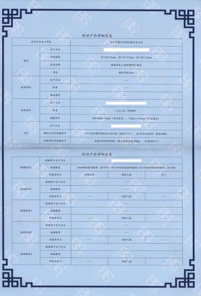 (三)施工图设计文件审查机构应对上述内容中涉及工程建设强制性标准的内容进行审查。 气密性、传热系数、遮阳性能、隔声性能 三、施工总承包单位应加强外窗工程质量管理 (一)对外窗工程施工质量负责。应采购符合设计图纸及规范、标准要求的外窗,鼓励采购 “北京市建筑材料供应单位质量诚信评价” 为A级、AA级外窗生产企业生产的外窗,或取得建筑门窗节能性能标识证书的外窗。 (二)可自行进行外窗安装。委托其他企业进行外窗安装时,应与被委托企业签订《外窗安装合同》;被委托企业应取得公司法人《营业执照》并具有一定外窗安装技术实力和管理能力,且每个项目管理部应配备满足安全质量管理需要且具有现场安装管理经验的专业人员,其中施工员(工长)、质量(检)员各不少于2名,专职安全员不少于1名,并应纳入施工总承包单位管理。上述人员应取得省级建设行政主管部门颁发的岗位证书或安全生产考核合格证书。 鼓励采用外窗生产、安装一体化方式。 《建筑业企业资质标准》 建市[2014]159号 专业承包序列资质标准里已经没有 金属门窗这个专业承包资质 (三)结构施工前,应依据设计图纸及相关规范要求编制《外窗工程施工方案》,并经监理单位审核后实施。《外窗工程施工方案》应明确外窗洞口处理措施、窗框(或附框)与墙体连接以及外窗四周的防水、密封、保温做法等施工工艺,并明确是否安装附框、是否设置企口等,同时应明确外窗工程渗漏等质量通病防治措施。因附框安装造成结构洞口尺寸加大或洞口设置企口的,应经设计单位同意并办理工程变更洽商后方可施工。 四、参建各方应加强外窗进场验收管理 (一)外窗宜整窗进场。外窗进场后,施工总承包单位应查验外窗及其型材、密封材料、玻璃的合格证以及安全玻璃强制性产品认证证书、外窗出厂检验报告和型式检验报告,并对比样窗进行外观质量检查,安全玻璃上必须有强制性认证标志(CCC标志),检查合格后报监理单位进行验收;取得门窗节能性能标识证书的外窗,应查验标识证书及标签。 塑钢窗